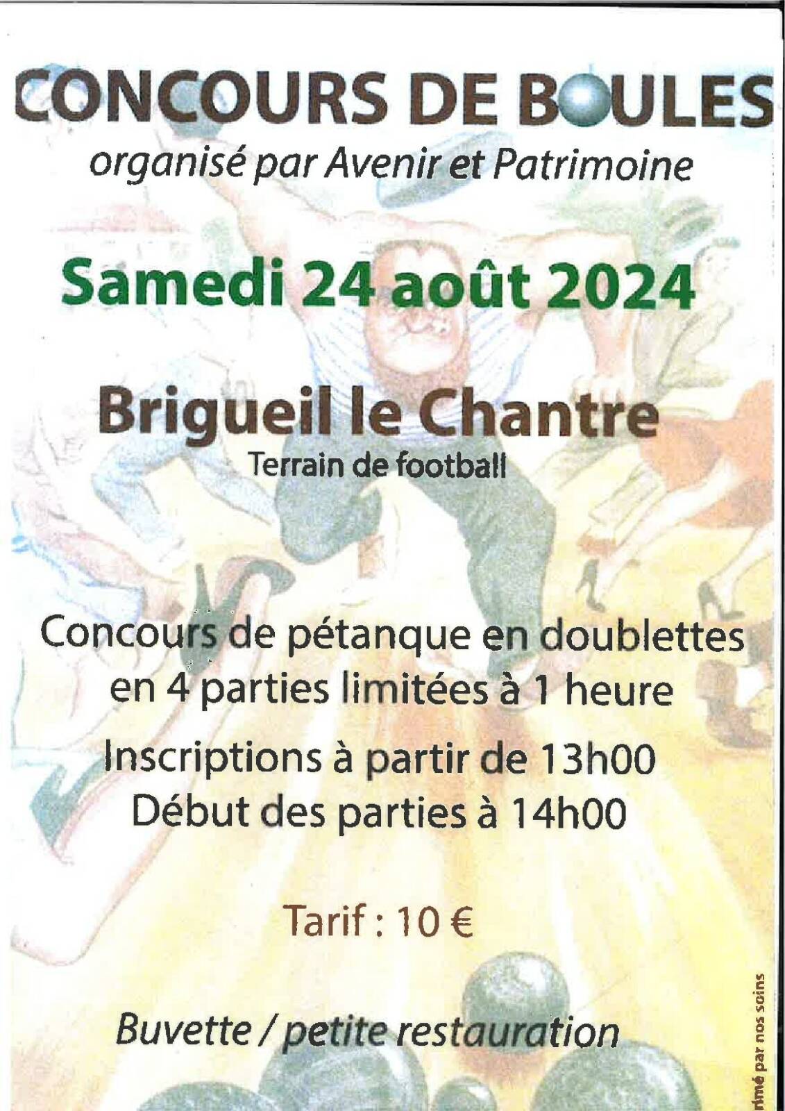 L’association ‘Avenir et Patrimoine’ organise un grand concours de boules à l’ancien terrain de football le samedi 24 août